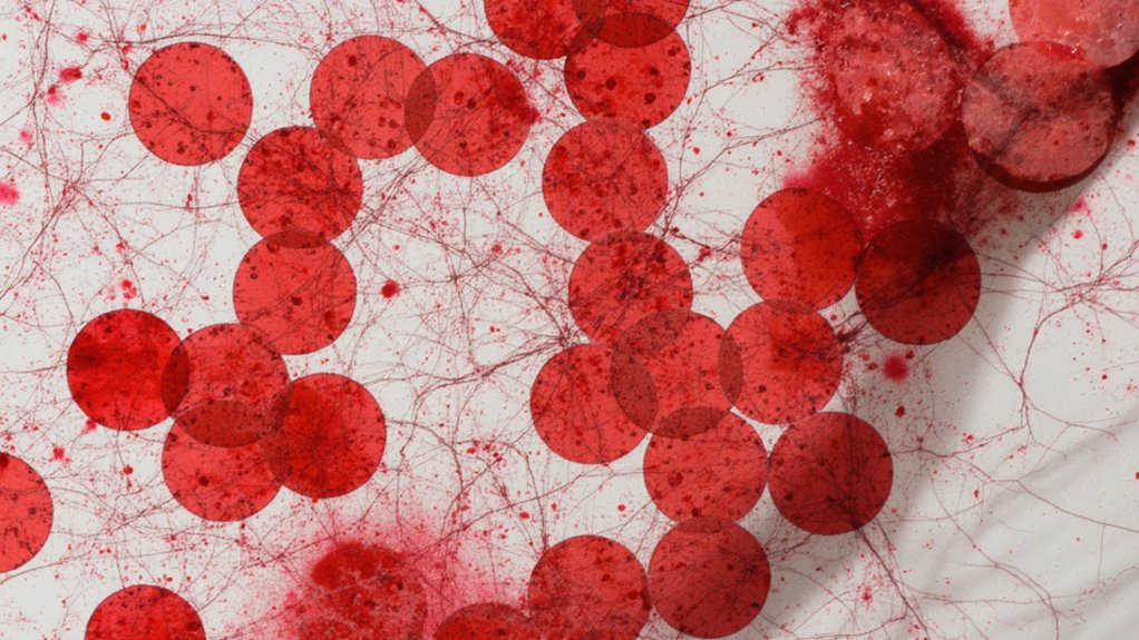 When blood comes into contact with fabric, it creates a complex stain that’s notoriously difficult to remove due to its protein-based composition. You’ll notice that blood stains change color as they dry, going from bright red to dark brown.