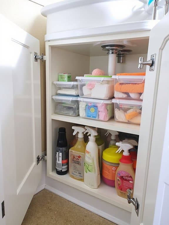 Labeling plastic storage containers is a practical solution for organizing bathroom essentials. By implementing a clear labeling system, you can easily track and access items like cotton balls, hair accessories, and dental supplies while maintaining order in your space.