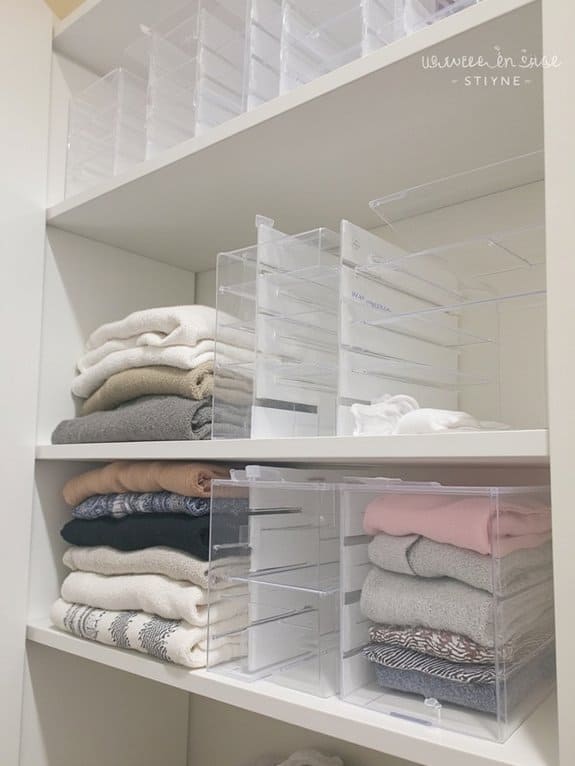 The stackable bins offer practical benefits for home organization, including moisture resistance and efficient use of vertical space in closets. Their durable construction combined with budget-friendly pricing makes them ideal for implementing storage solutions throughout different areas of the home.