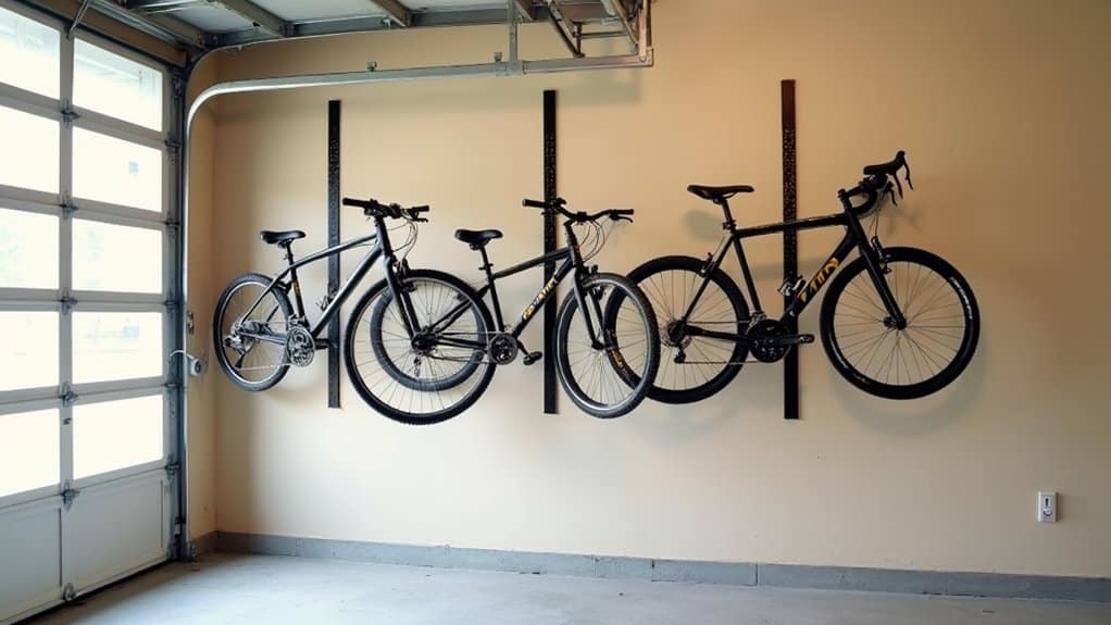 Vertical bike hooks are an excellent solution for organizing bicycles in small spaces, such as garages or apartments, by utilizing wall space to keep bikes off the floor. To start, choose a sturdy wall with enough clearance to hang your bike vertically, ensuring the area is free of obstructions like shelves or other stored items. Install heavy-duty bike hooks or mounts, typically designed to hold the front wheel or frame, by drilling into wall studs for maximum stability and weight support.