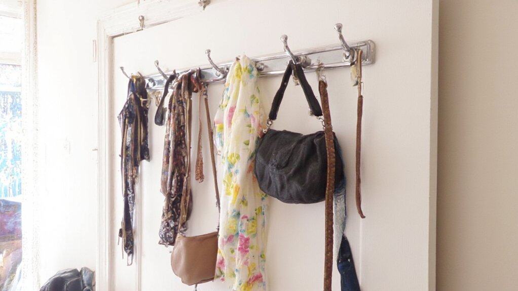 To organize with door-mounted hooks, start by categorizing the items you plan to hang, grouping similar items together for easy access. Assign specific hooks for each category, such as one for purses and another for hats, to maintain order and prevent clutter. Regularly declutter these hooks by removing items you no longer use, keeping the space functional and tidy.