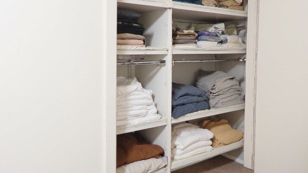 Installing adjustable shelves in a sliding door closet is a practical way to maximize storage and customize the space to your needs. Begin by measuring the interior dimensions of the closet to determine the size and number of shelves you’ll need, guaranteeing they fit snugly between the walls or within a shelving unit. Use a level and pencil to mark the desired heights for each shelf, allowing for flexibility to store items of varying sizes.
