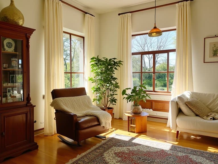 For ideal mood enhancement, layer lighting at different heights using table lamps, floor fixtures, and overhead options. Strategic placement of these light sources eliminates dark corners while maintaining a cozy atmosphere perfect for relaxation, entertaining, or everyday activities.