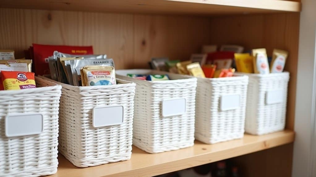 Baskets are an excellent tool for organizing small items in your pantry, helping to keep everything tidy and easily accessible. Start by grouping similar small items, such as snack packs, spice packets, or tea bags, into designated baskets based on category or frequency of use. Choose baskets that fit comfortably on your pantry shelves, ensuring they are sturdy and, if possible, labeled for quick identification. This method prevents tiny items from getting lost among larger products and creates a visually cohesive look.