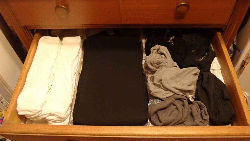 To use drawer dividers effectively, start by sorting your items into categories, such as folding socks in pairs or grouping underwear by type. Then, place the dividers into the drawer, adjusting them to create sections that match the size and quantity of each category. This method not only maximizes space but also helps maintain a neat appearance, ensuring your closet remains organized over time.