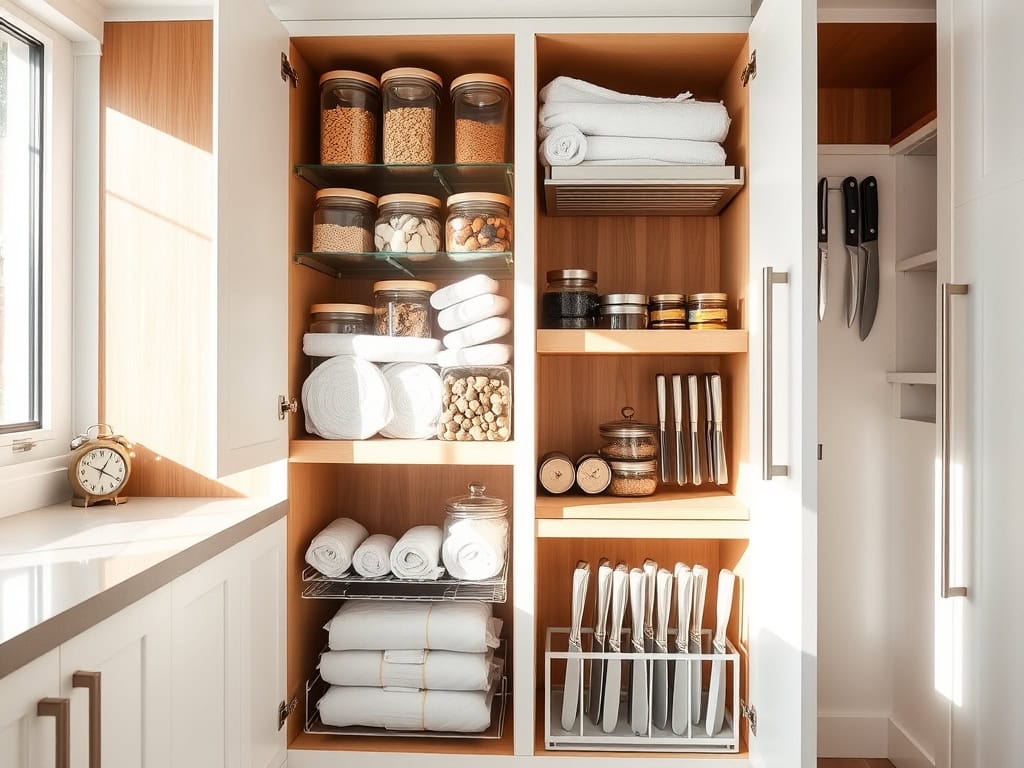 If you’ve ever felt frustrated trying to find that one spice jar hiding in your cramped kitchen cabinets, you’re not alone! I’ve been there too, and it’s what inspired me to transform my tiny cooking space into an organizational masterpiece. With just a few smart cabinet solutions, you can double your storage capacity and make every inch count. Let me share nine game-changing tips that’ll help you reclaim your kitchen sanity and create a space that actually works for you.