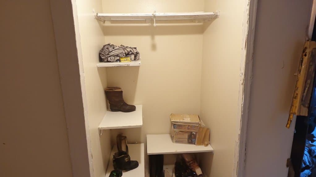 Installing door-mounted racks is an excellent way to maximize space in your coat closet without taking up valuable floor or shelf room. These racks can be easily attached to the inside of the closet door and are perfect for storing lightweight items like scarves, belts, hats, or even small bags. Choose a rack that fits the dimensions of your door and guarantee it’s securely fastened to avoid damage or sagging over time.