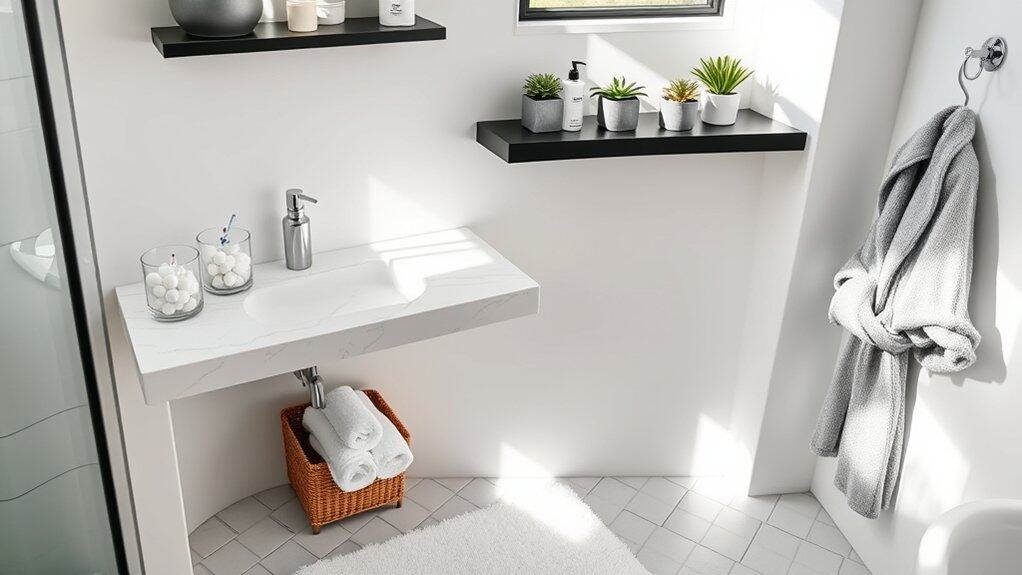 Maintaining a well-organized bathroom requires an initial thorough decluttering followed by implementing sustainable systems that prevent future chaos. When you establish effective organization methods, you’ll spend less time searching for items and more time enjoying a spa-like atmosphere in your own home.