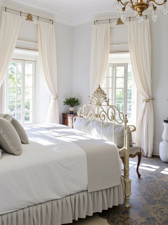Victorian wrought-iron beds represent the pinnacle of antique bedroom furniture, combining ornate craftsmanship with enduring functionality. Their distinctive scrollwork headboards, featuring floral motifs and geometric designs, create dramatic focal points while brass finials and medallions add sophisticated detail.