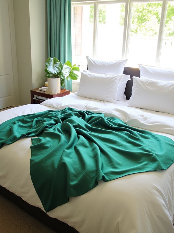 Green silk throw blankets combine luxury and functionality, offering year-round comfort while adding an elegant accent to bedroom decor. The smooth texture of silk paired with sophisticated green hues creates visual and tactile appeal that enhances any bedding ensemble.