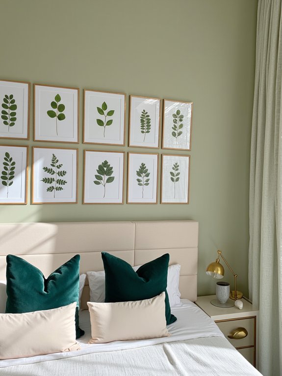 A eucalyptus gallery wall offers a sophisticated way to showcase botanical art in the home. By combining various eucalyptus-themed pieces like pressed leaves in floating frames, botanical prints, and black and white photographs, homeowners can create an eye-catching display that spans 4-6 feet wide.