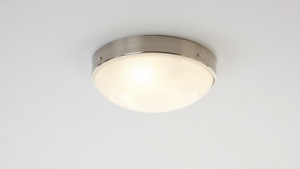 Let’s shift focus from the compact vanity mirror light to another stylish option for small bathrooms: the modern flush mount. You’re gonna love how these fixtures hug the ceiling, saving precious space in tight quarters. They’re perfect for a sleek look with ample light.