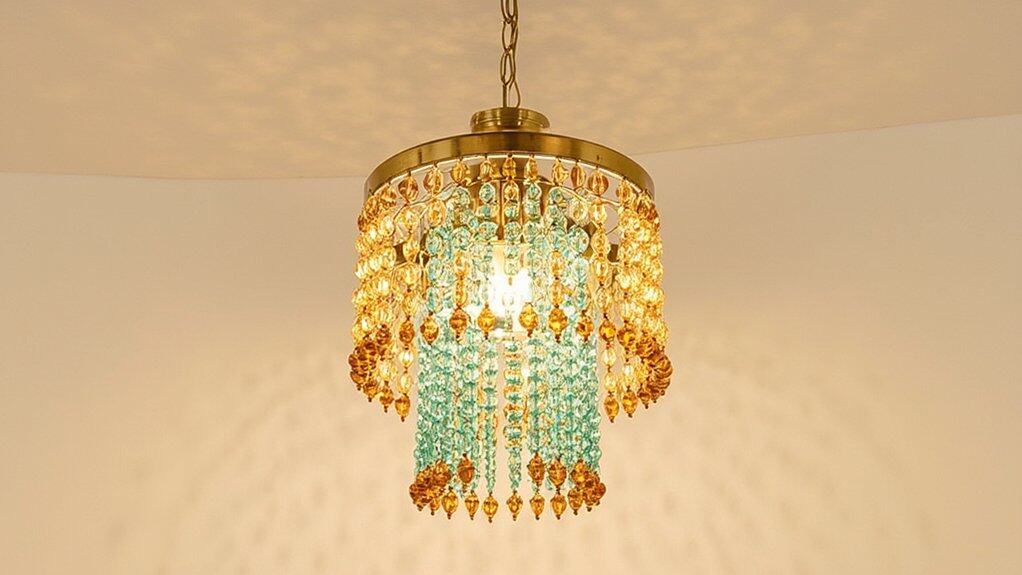 Creativity sparks with a Bohemian Beaded Light Fixture, and you’ll transform your powder room into a unique haven. This fixture, often 12-15 inches in diameter, adds artsy flair with cascading beads. It’s perfect for a 5×7-foot space, and you can install it in under 2 hours.