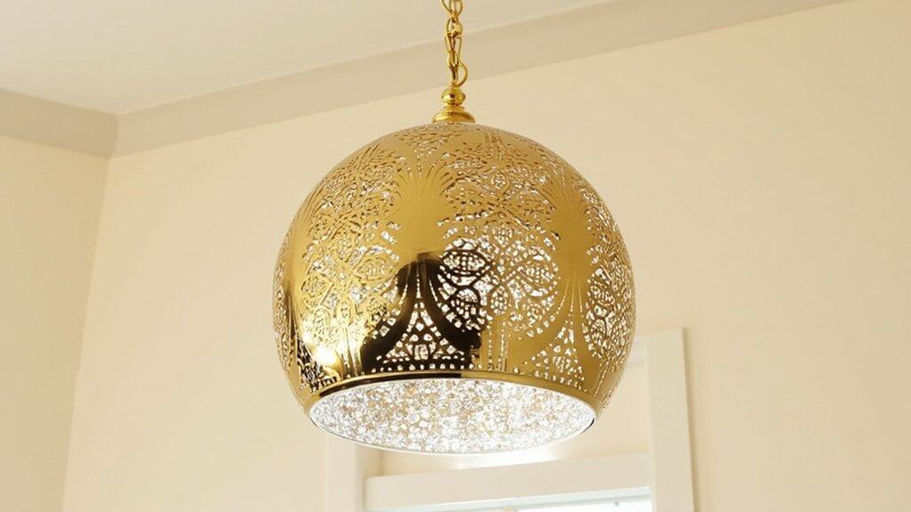 Sophistication shines bright with Glamorous Gold Orb Lights, and you’ll instantly elevate your powder room’s style with them. These fixtures, often 12-16 inches in diameter, bring a chic vibe in just 30 minutes of installation.