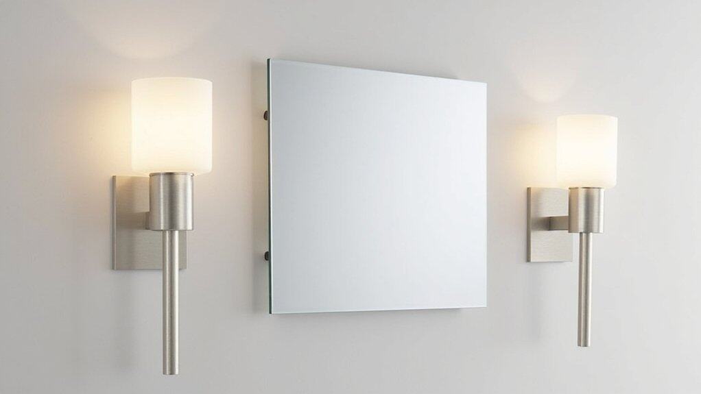 - Minimalist Metal Sconces – Opt for brushed nickel sconces, 12 inches tall, mounted 60 inches from the floor on either side of your mirror for balanced light.