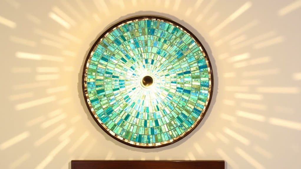 While exploring fresh designs for your powder room, consider the stunning impact of Unique Mosaic Tile Lights. These fixtures blend art and function, turning a small space into a visual gem with handcrafted tiles. They’re often 10-12 inches wide, perfect for tight spots above a 24-inch vanity, and install in about 2 hours.