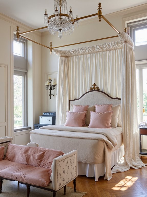 The key design elements include strategically placed dimmable string lights behind the fabric panels, luxurious bedding with silk pillowcases and plush comforters, and carefully layered textures. These components work together to craft a dreamy sanctuary that balances both romance and practicality.