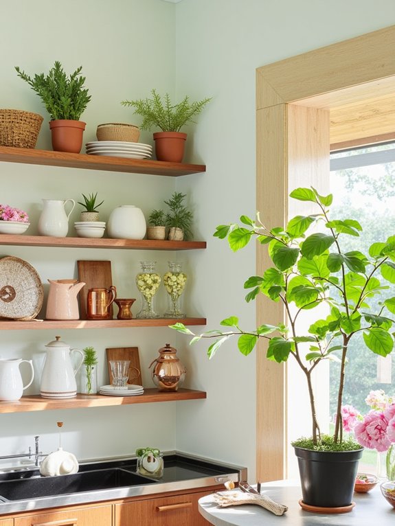 Floating shelves provide a contemporary solution for kitchen storage while serving as an artistic display platform. These versatile fixtures allow homeowners to create engaging arrangements that blend practicality with aesthetic appeal through carefully curated decorative elements.