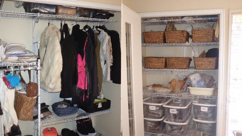 Hey there, let’s chat about organizing your front entry coat closet for better accessibility! I remember struggling with my own cramped closet—coats falling, shoes everywhere—until I got creative. You can transform yours too with a few smart tweaks. Start by installing adjustable shelving; trust me, it’s a game-changer for fitting everything just right. Curious how to maximize every inch? Stick with me for some clever tricks!