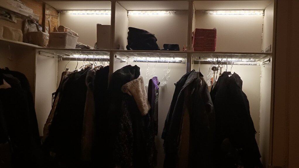 Installing under-shelf lighting in your coat closet can transform the space by making it easier to see and access items, especially in darker corners. Begin by selecting appropriate lighting, such as battery-operated LED strip lights or puck lights, which are easy to install and don’t require complex wiring. Guarantee the lights are positioned strategically under shelves to illuminate the areas below, focusing on spots where coats, shoes, or other items are stored.