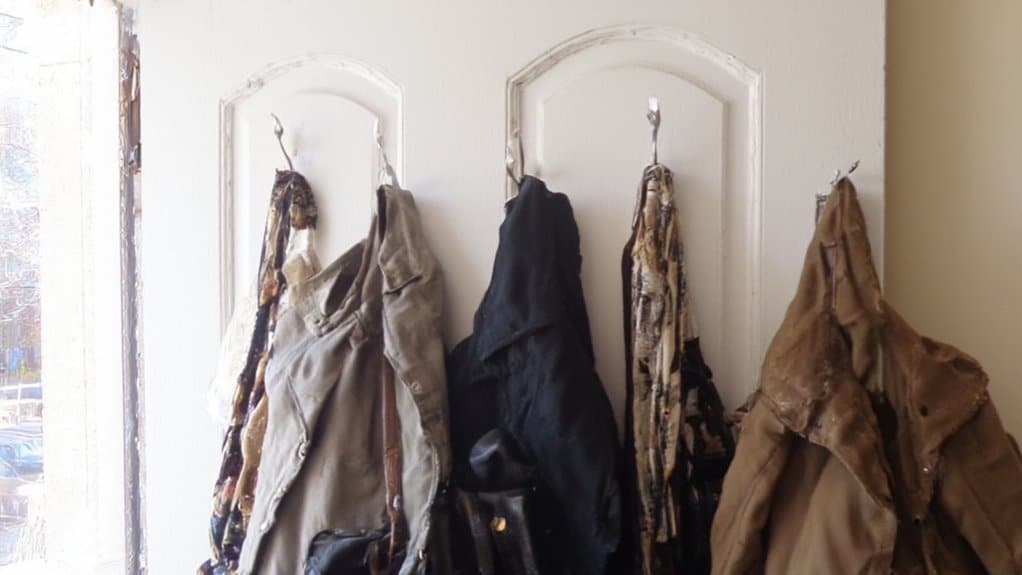 Attaching a magnetic memo board to the inside of a coat closet door is a clever way to keep track of important notes, reminders, or shopping lists without taking up extra space. Choose a memo board that fits the dimensions of your closet door and guarantee it has a strong magnetic backing or comes with adhesive strips for secure attachment. Before installing, clean the door surface to remove dust or grime, guaranteeing the board adheres properly.
