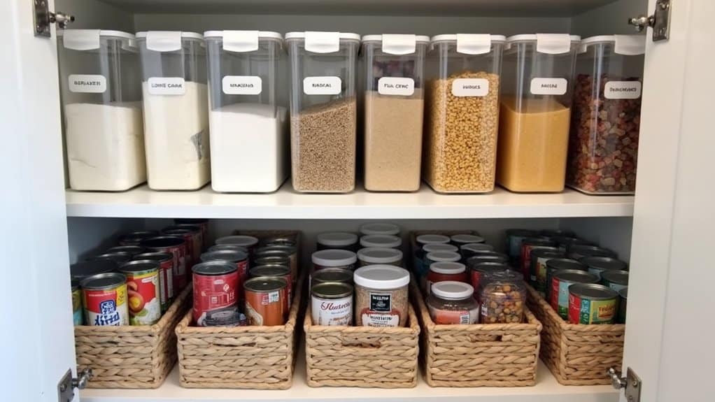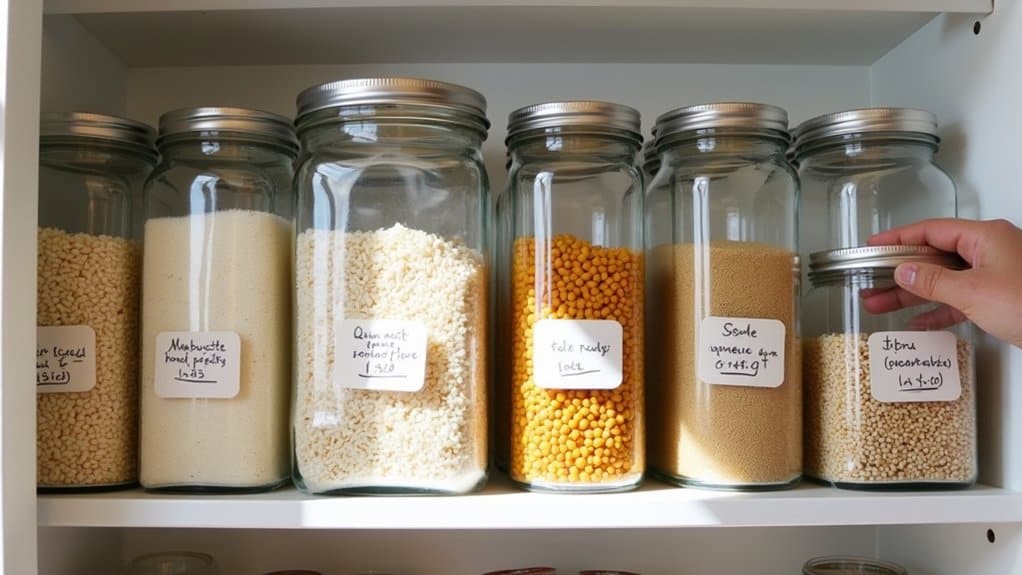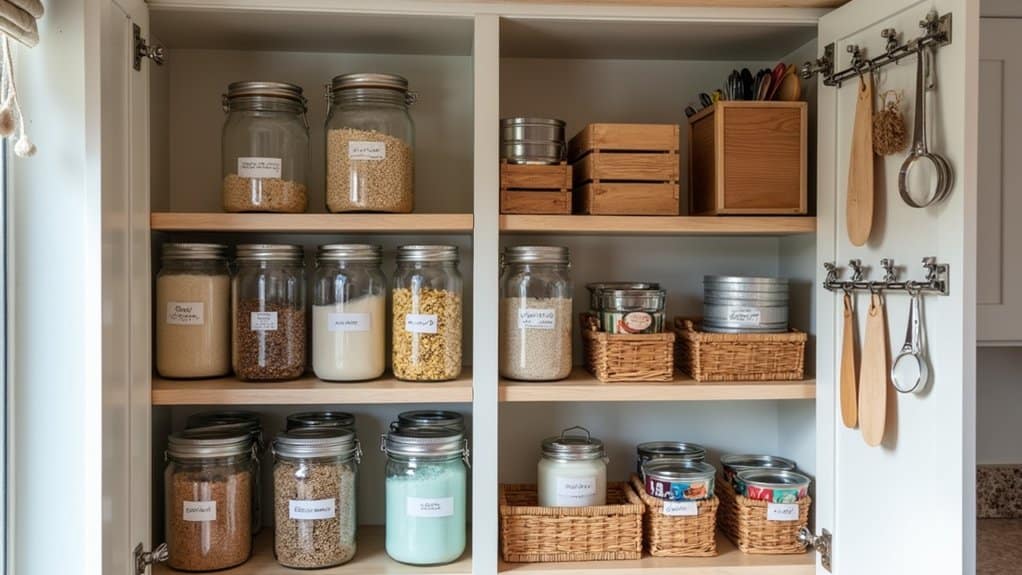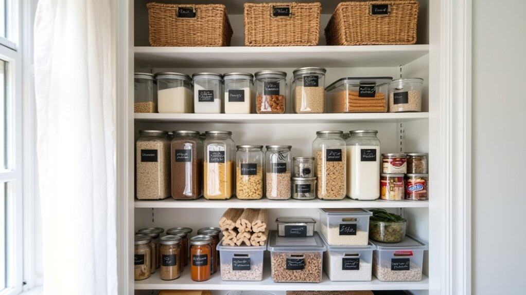 Labeling everything in your pantry is a game-changer when it comes to maintaining an organized and efficient kitchen. Clear labels help you quickly locate ingredients, prevent duplicates, and guarantee that everyone in the household knows where items belong. This simple step reduces frustration during meal prep, saves time, and keeps your pantry clutter-free. Whether you’re on a tight budget or managing a large family, labeling transforms your pantry into a stress-free zone where you can focus on cooking and enjoying meals rather than searching for misplaced items.
