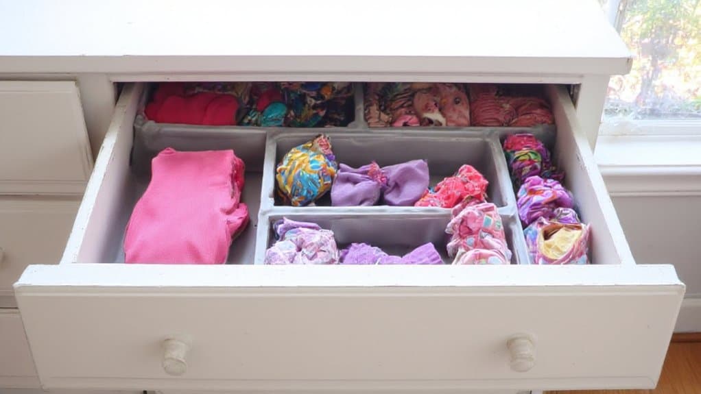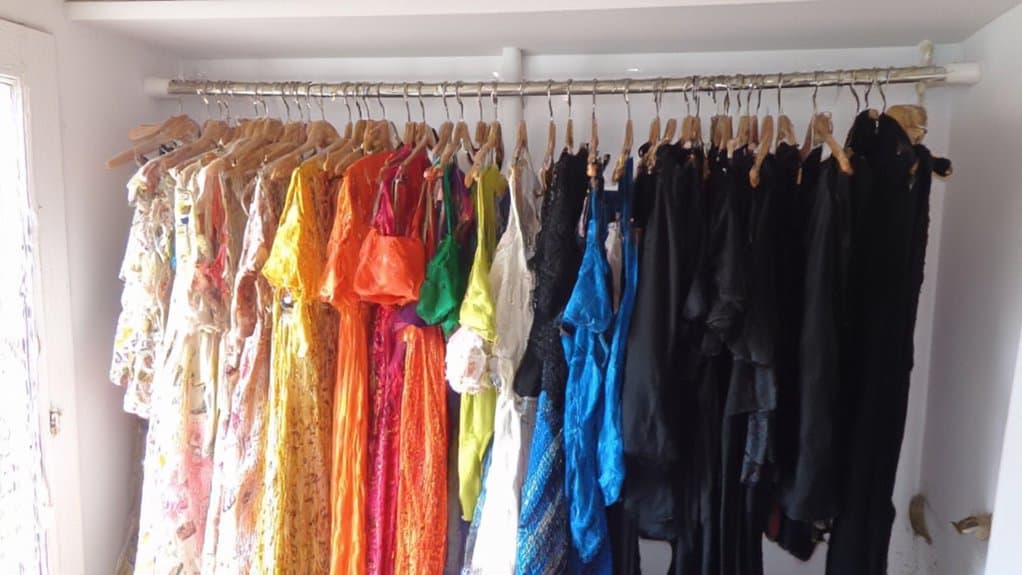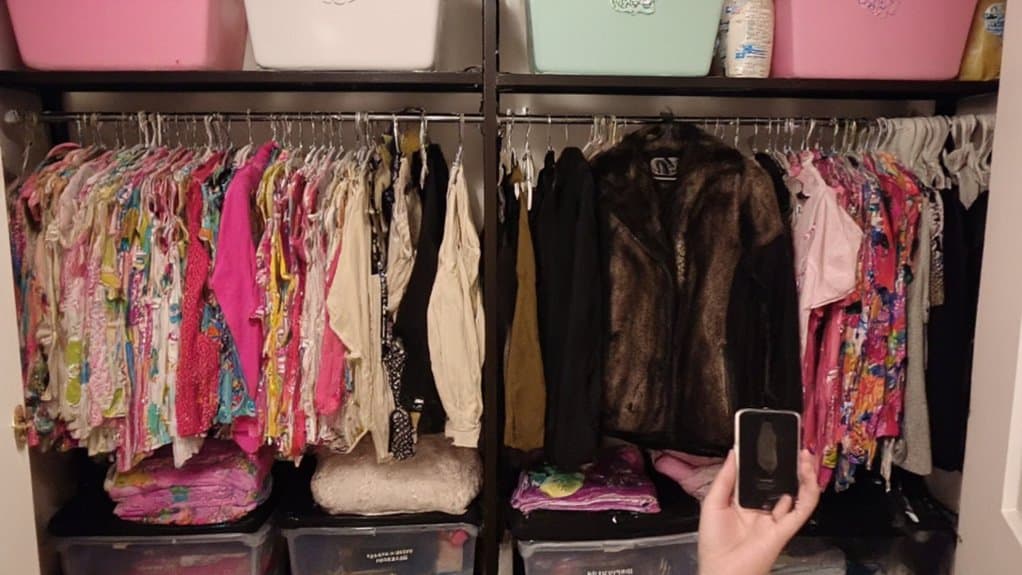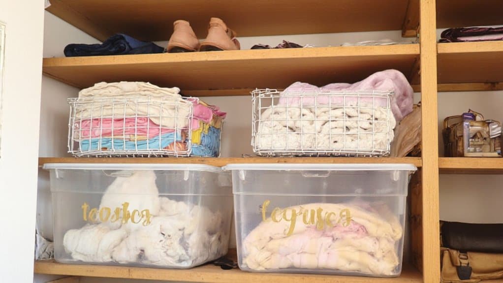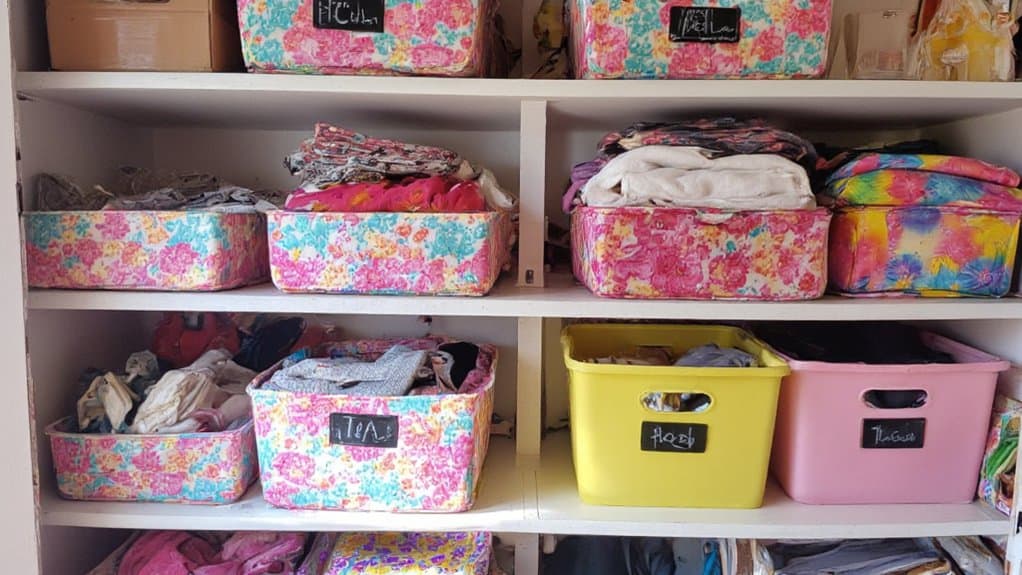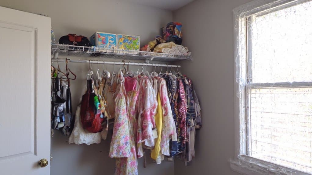 Seasonal clothing rotation is an essential strategy for maintaining an organized girl’s closet while guaranteeing easy access to appropriate attire throughout the year. Begin by sorting clothes into categories based on the seasons—summer, winter, spring, and fall—identifying items like heavy coats for winter or light dresses for summer. Store out-of-season clothing in labeled bins or under-bed storage containers to free up space for current-season outfits.
