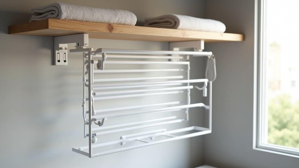 When not in use, fold or slide the rack out of the way to maintain a clutter-free environment and allow easy access to other stored items. Choose a drying rack with adjustable heights or customizable configurations to accommodate different laundry sizes and shapes. This setup not only saves space but also keeps your laundry room organized by integrating drying solutions into your existing storage framework.
