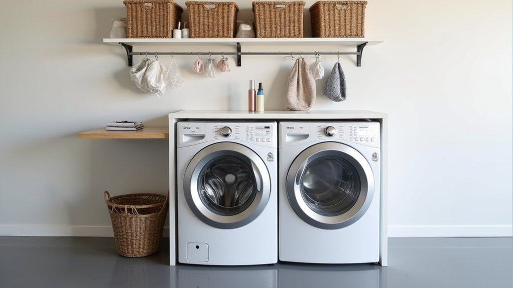 Hey, let’s chat about turning your garage into a laundry room that’s both organized and functional! I’ve tackled this project myself, and trust me, it’s a game-changer. Start with a wall-mounted folding station—mine’s a 36-inch wide shelf that flips down when needed. It saves space and keeps things tidy. But wait, there’s more to make your setup shine with clever storage tricks—stick around for the full scoop!