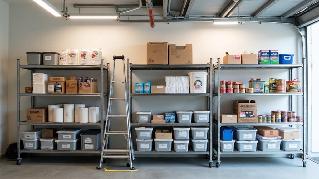 Creating zones for different categories of supplies is a practical approach to organizing a garage pantry, guaranteeing that items are easily accessible and well-arranged. Start by evaluating the types of items you store, such as food supplies, cleaning products, bulk goods, and emergency kits, and group them into distinct categories. Assign specific areas or shelves in the garage pantry for each category, making sure frequently used items are placed at eye level for convenience. Label each zone with clear signage or tags to maintain consistency and help family members locate items quickly.