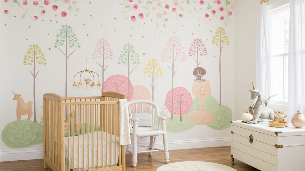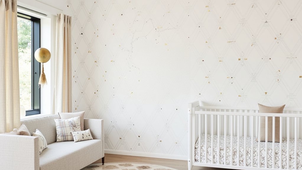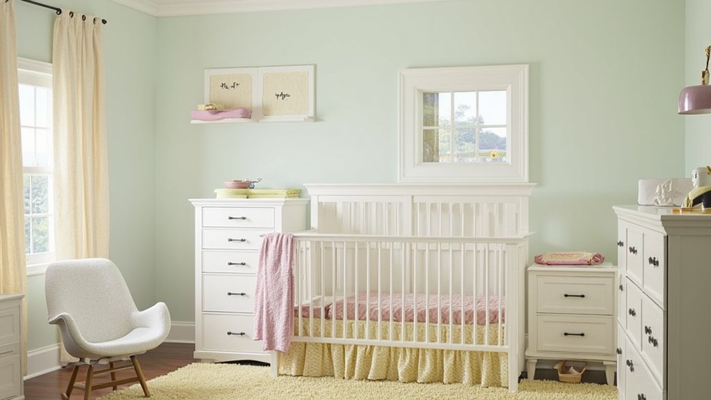 While designing a gender-neutral nursery can feel overwhelming, starting with a pastel color palette offers a calming foundation. Imagine soft mint greens, pale yellows, or gentle lavenders wrapping the room in serenity. You’ll want to paint walls with a matte finish for a soothing effect, ideally in a 10×10 foot space.