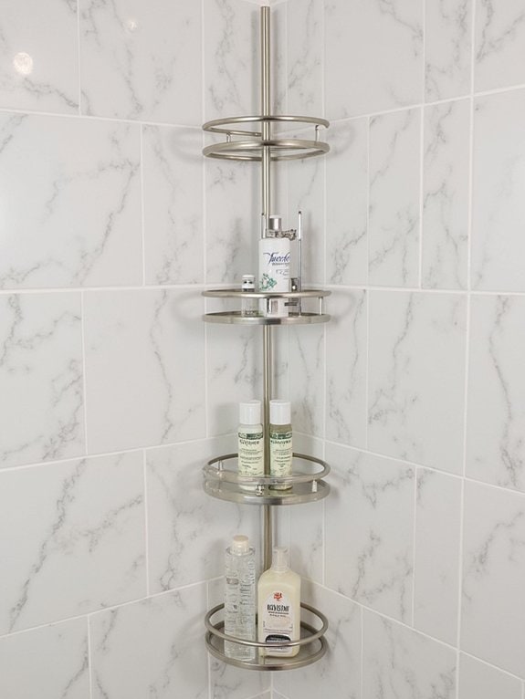 Corner shower caddies transform unused shower corners into practical storage spaces for bathroom essentials. These organizers feature multiple shelves and hooks to keep toiletries, bath products, and accessories neatly arranged and easily accessible while showering.