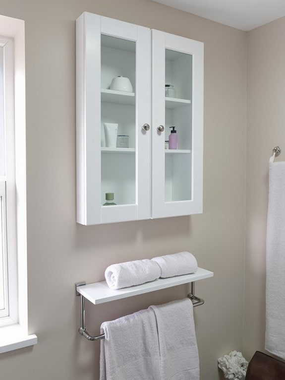 For optimal use, the cabinet should be mounted at eye level with the towel bar positioned 48 inches from the floor. A cabinet depth of 4-6 inches maintains a slim profile while offering adequate storage space. Interior door hooks can maximize storage capacity for smaller items like washcloths and toiletries.