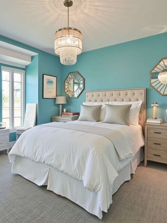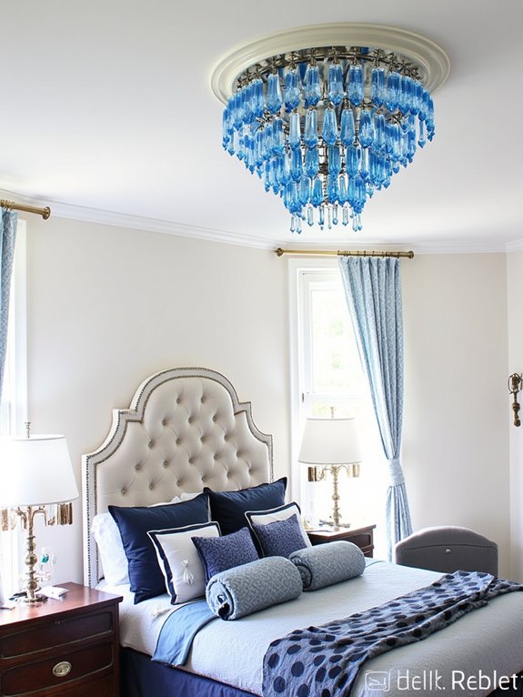 Blue crystal light fixtures blend functionality with enchanting design, featuring multifaceted elements that create sparkling patterns throughout bedroom spaces. These elegant pieces combine the timeless appeal of crystal with blue tints to produce an ethereal ambiance.