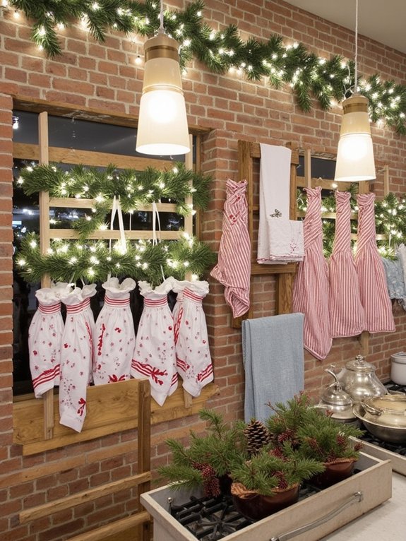 Festive kitchen aprons combine holiday cheer with practical functionality during the Christmas season. These decorative yet protective garments feature classic seasonal motifs like candy canes, holly, and gingerbread men, transforming everyday cooking spaces into festive culinary workshops.