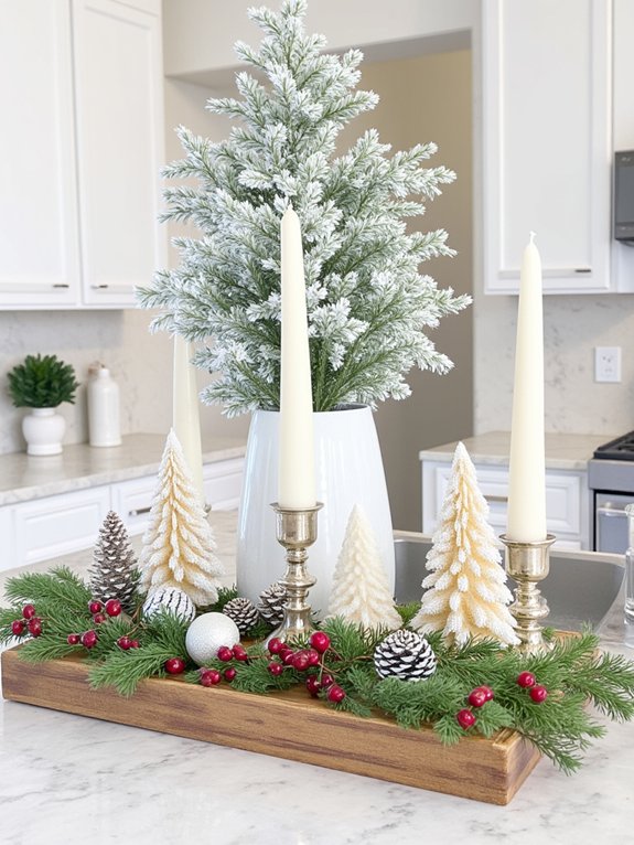 From simple windowsill arrangements to grand island centerpieces, each idea brings holiday spirit to the hub of your home.