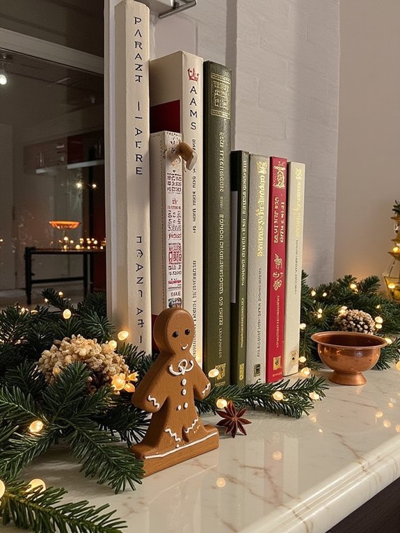 The key to an elegant island display lies in thoughtful layering of seasonal elements. A centerpiece of fresh evergreen branches, pinecones, and flameless candles forms the foundation, while fruit bowls, miniature Christmas trees, themed cookbooks, and decorative accessories add dimensional interest and complete the festive arrangement.
