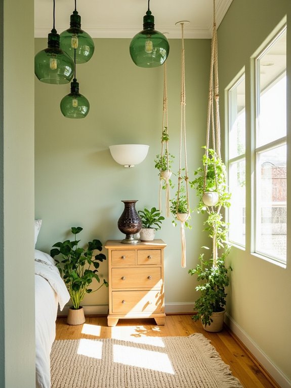 For optimal impact, these fixtures can be installed in clusters at varying heights above nightstands, typically ranging from 24 to 36 inches from the ceiling. Different shades of green glass, from delicate seafoam to rich emerald, work harmoniously with existing design elements like terracotta to create a cohesive and calming atmosphere.