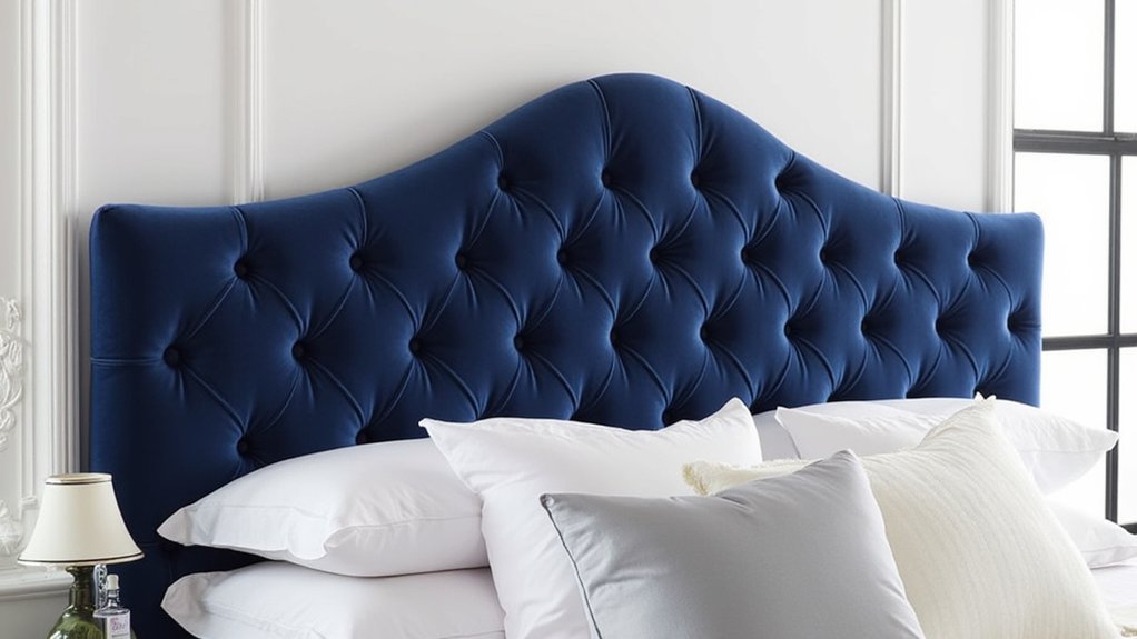 While designing your bedroom, a tufted upholstered headboard can instantly add elegance and comfort to your space. You’re crafting a cozy retreat, and this choice speaks luxury. Imagine a 60-inch wide, 48-inch tall headboard in soft velvet, perfect for a queen bed.