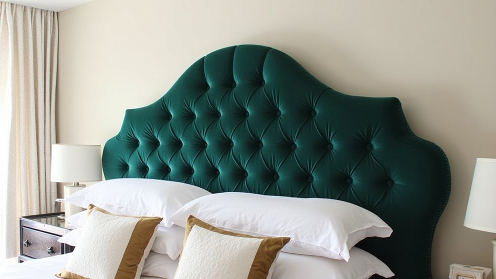 If you’re craving a touch of elegance, consider upgrading your bedroom with a luxurious velvet headboard that screams sophistication. Velvet’s soft texture and rich colors instantly elevate your space, making it feel like a high-end hotel. Imagine a cozy retreat right at home!