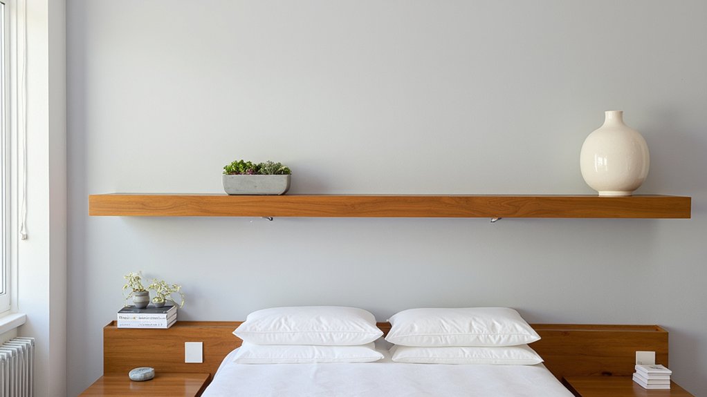 If you’re looking for a modern twist on bedroom design, consider crafting a floating shelf headboard for a sleek, functional look. It’s easy to install and adds storage without cluttering your space. You’ll need basic tools and materials to get started.