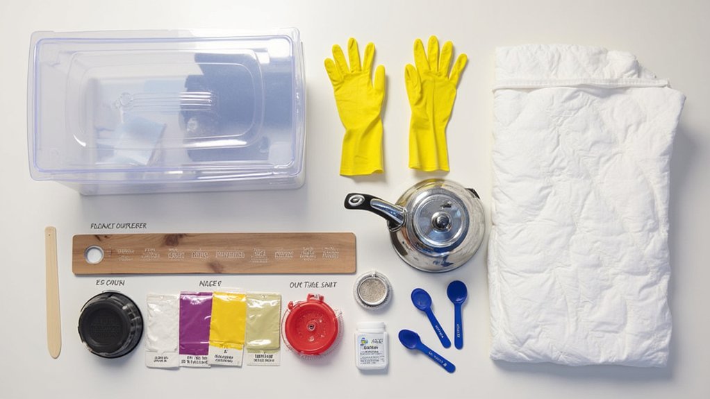 A successful comforter dyeing project requires gathering several essential materials and tools before you begin the transformation process. You’ll need: