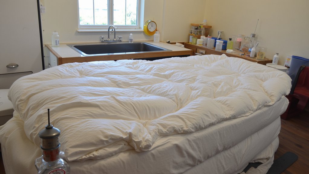 To test the dye’s permanence, press a white cloth against different areas of your dried comforter. If no color transfers, you’ve successfully set the dye. For best drying techniques, shake the comforter periodically during cycles and add clean tennis balls to maintain even heat distribution and prevent clumping.
