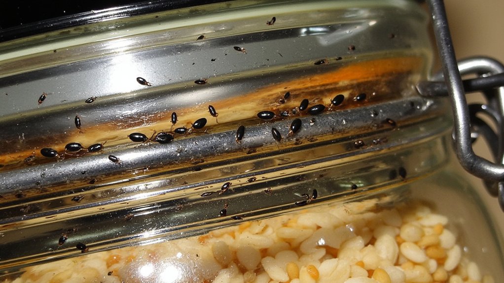 When sealed packages sit on your shelves for several weeks, you’ll start noticing subtle signs that weevils have made themselves at home. Using proven weevil detection methods, check for these key indicators: