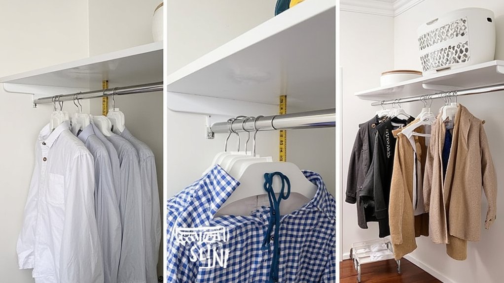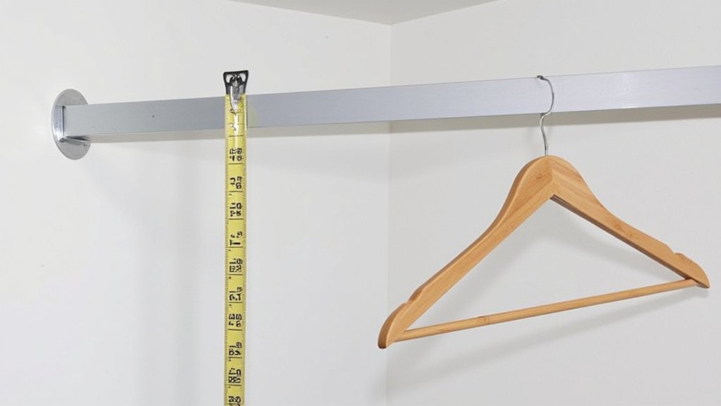“These measurements guarantee proper clearance while maximizing your storage space,” says professional organizer Sarah Chen. You’ll want to maintain these distances even when installing specialty rods for pants, skirts, or accessories.