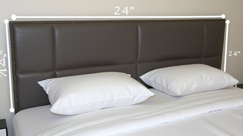 When it comes to headboard height, three key measurements serve as standard guidelines for most bedroom setups. For ideal headboard proportions, you’ll want the top edge to extend 14-16 inches above your mattress for a twin or full bed. Queen and king beds typically need 28-30 inches of height above the mattress for proper visual balance.