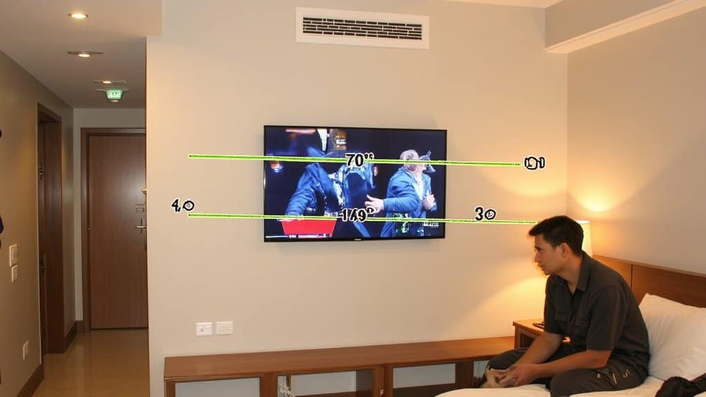 Precision matters when mounting your 50-inch TV to guarantee both comfort and safety during viewing. You’ve gotta do this right to avoid neck strain or accidents. Let’s break it down with key tips.