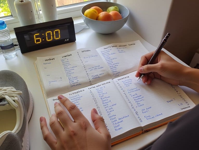 Record your progress metrics through achievement journaling, noting specific success indicators along the way. “Small win celebrations reinforce positive behavior patterns,” explains habit researcher Dr. Sarah Chen. You’ll create powerful feedback loops by recognizing milestones every few weeks.