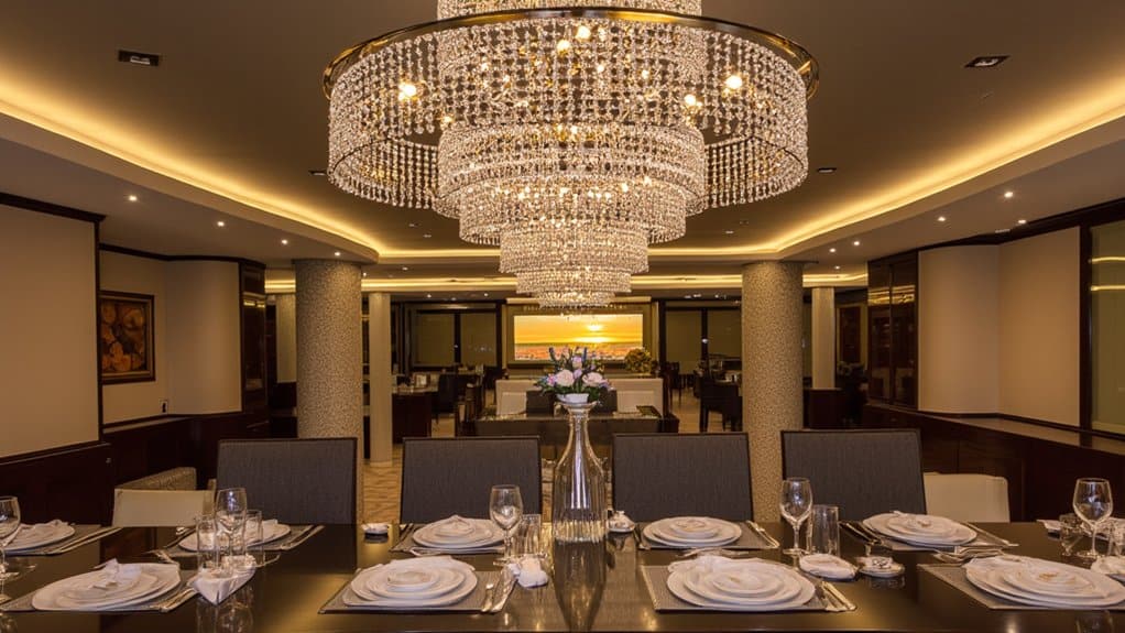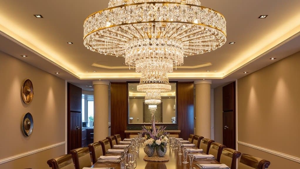 Getting the light spread right sets the stage for perfect dining room lighting, but you can still stumble on placement pitfalls if you’re not careful. Avoid common mistakes to guarantee your space shines just right with proper fixture positioning.