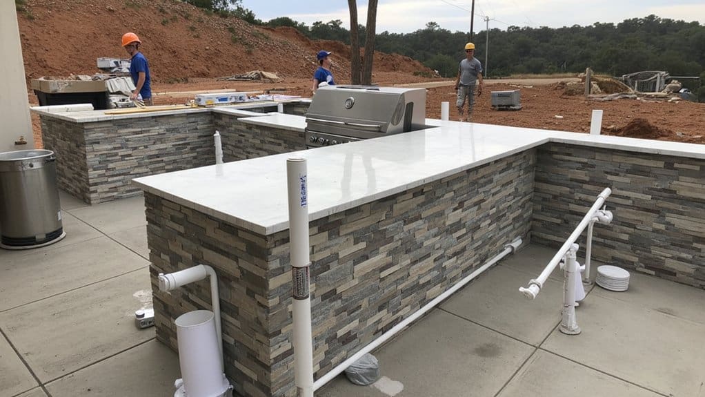 When you’re planning to hire a contractor for your outdoor kitchen, start by comparing installation costs across different professionals to find the best value. Look at factors impacting labor costs, like the project’s complexity, the size of the space, and local hourly rates. You’ll notice that these elements can greatly affect your total budget, so evaluate them carefully before signing a contract.
